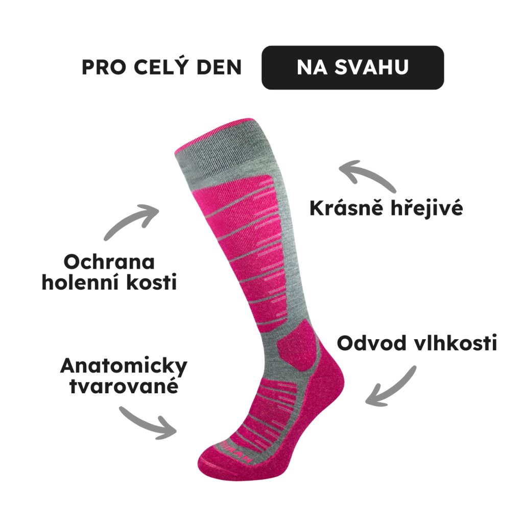 Zapomeňte na zmrzlé nohy a puchýře. Tyhle ponožky jsou jako dělané pro to, abyste si užili lyžovačku od rána až do večera. Merino vlna se postará o teplo a antibakteriální vlastnosti zajistí, že ponožky vydrží svěží celý den.