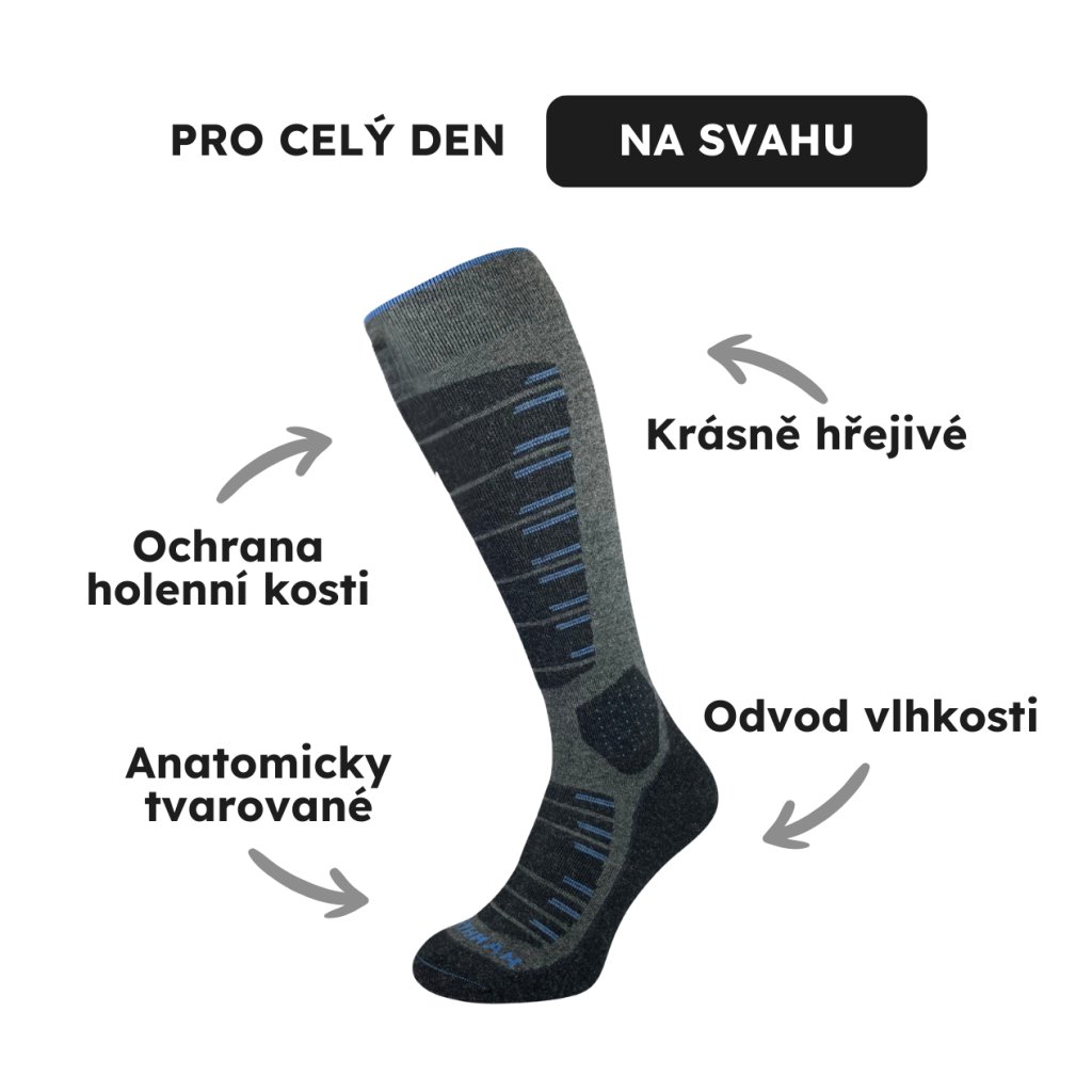 Zapomeňte na zmrzlé nohy a puchýře. Tyhle ponožky jsou jako dělané pro to, abyste si užili lyžovačku od rána až do večera. Merino vlna se postará o teplo a antibakteriální vlastnosti zajistí, že ponožky vydrží svěží celý den.
