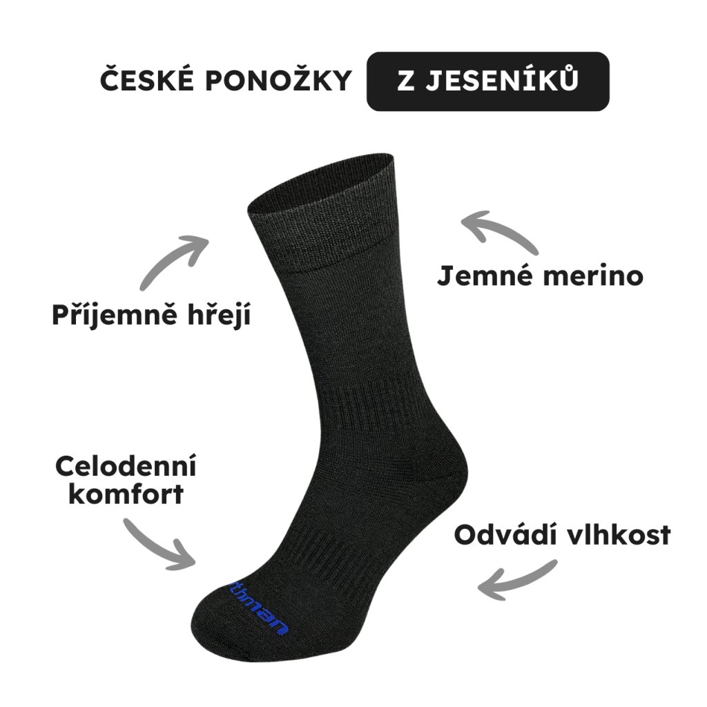 Merino 3-pack Černé Turistické Merino Ponožky (sada)